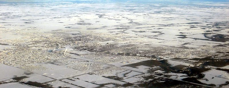 Vue aérienne de Grande Prairie en hiver, vers le nord.