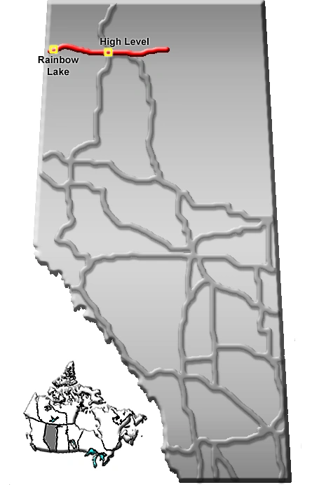 Rainbow Lake Airport est situé au point le plus à l'ouest de l'autoroute.