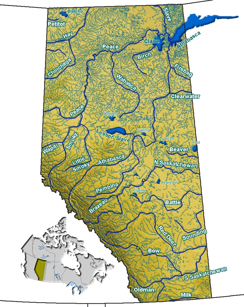 | Lesser Slave Lake | Lesser Slave River | Océan Arctique | 1160 | le second grand lac situé entièrement en Alberta |